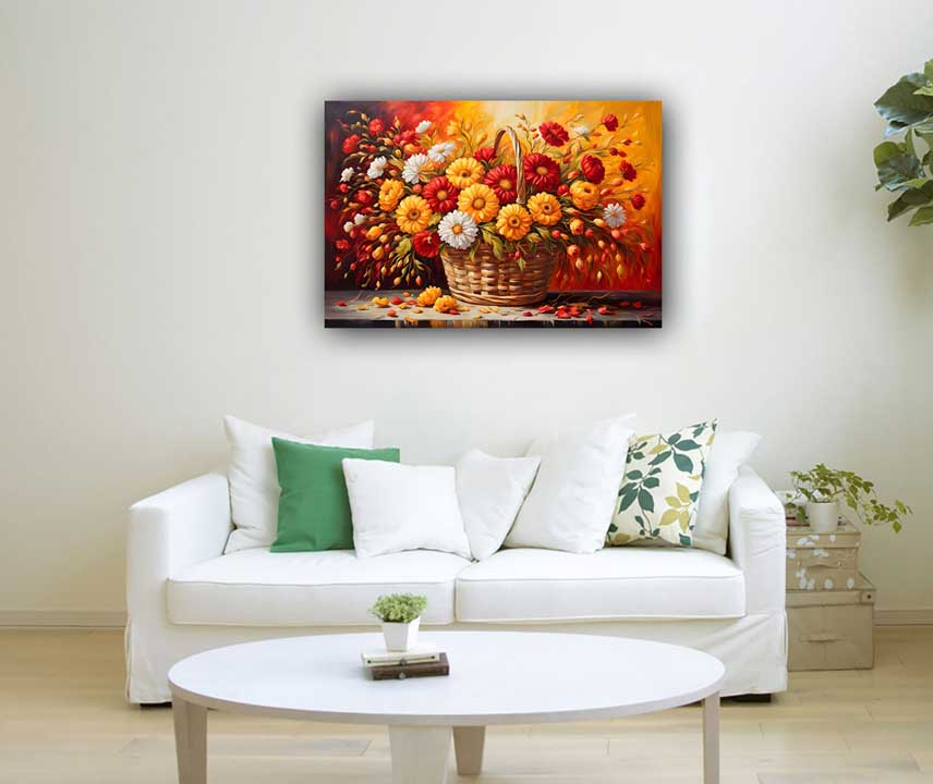 Bring prosperity and abundance to your space with this beautiful painting of an overflowing basket of flowers. Perfect for the Southeast direction as per Vastu Shastra.