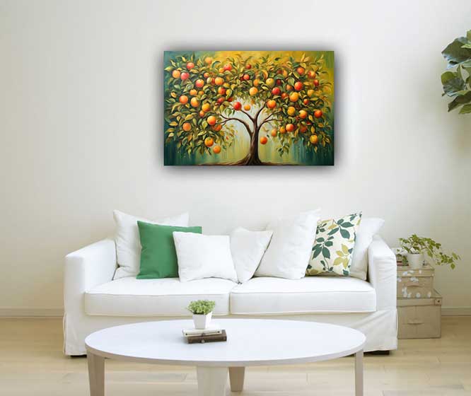 Enhance prosperity and abundance with this stunning tree laden with ripe apples artwork. Perfect for the southeast direction, this Vastu-inspired piece brings harmony and financial growth to your space.