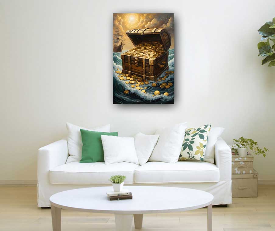 Enhance the flow of financial opportunities and prosperity with this exquisite artwork depicting a treasure chest overflowing with gold coins. Perfectly aligned with Vastu principles, this painting is ideal for the North direction, symbolizing abundance, wealth, and growth. The intricate details and vibrant hues bring a sense of opulence, making it a stunning addition to your home or office. Place it in the North to activate the water element and invite a continuous flow of prosperity into your life.