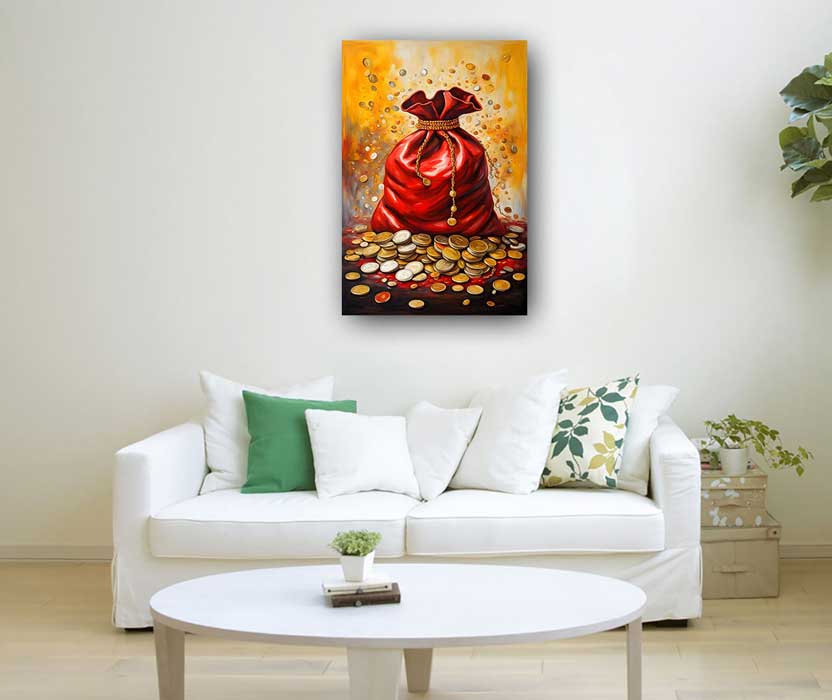 Enhance your financial success with this money bag artwork, designed for the Southeast direction as per Vastu Shastra. Perfect for attracting wealth, prosperity, and financial growth.