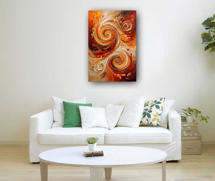 Elevate your space with this mesmerizing abstract painting of swirling spirals in vibrant shades of gold, red, and orange. Designed to symbolize continuous growth, evolution, and the unending flow of wealth and prosperity, this artwork is perfect for placing in the southeast direction as per Vastu Shastra. The radiant hues of this masterpiece ignite energy, attract abundance, and create a focal point of opulence in your home or office. Ideal for those seeking to enhance financial stability and invite positivity into their lives.