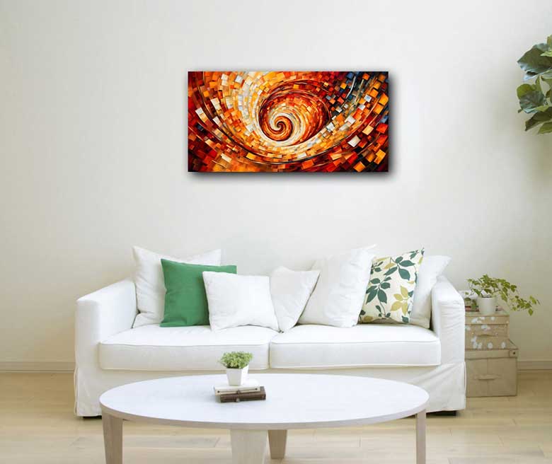 This captivating abstract artwork features dynamic swirling patterns in shades of red, orange, and gold, symbolizing continuous growth, evolution, and the unending flow of wealth. Perfectly designed for the Southeast direction as per Vastu principles, this piece helps attract prosperity and financial abundance. The flowing spirals encourage a positive energy flow, making it an ideal addition to spaces focused on wealth creation, business success, and financial stability.