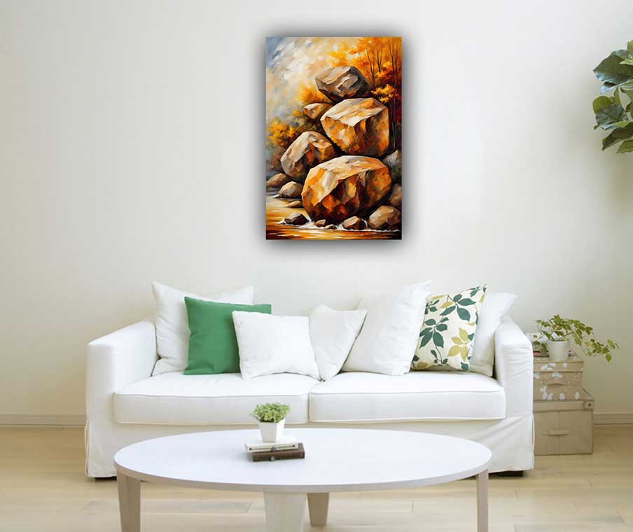 Enhance stability and strength in the southwest direction with this rock-boulders artwork. Perfect for home or office, this Vastu-inspired art promotes security, grounding, and emotional well-being.