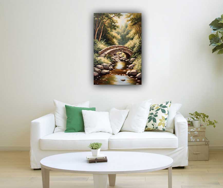 Transform your space with the Cobblestone Bridge in Deep Forest painting. Positioned in the East, this artwork fosters social connections, harmonious relationships, and improved communication. Perfect for creating a welcoming and connected environment.
