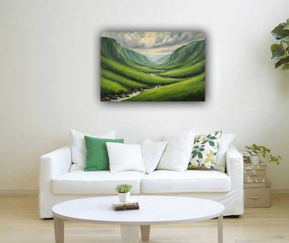 Serene Green Valley Artwork for Health and Well-Being