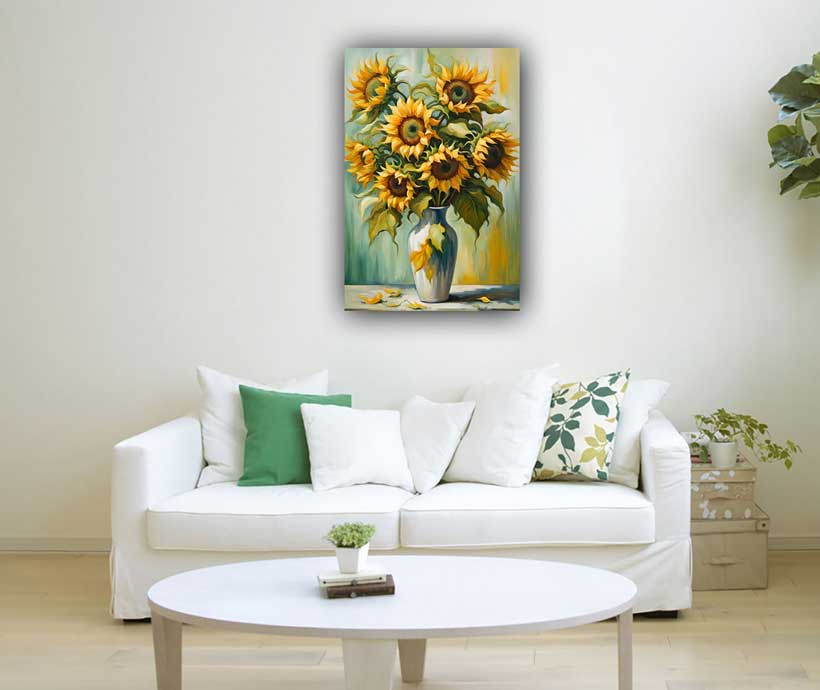 Bring positivity and new beginnings to your space with this vibrant Sunflower Vase Painting, perfect for the East direction. A Vastu-inspired artwork symbolizing joy, growth, and harmony.