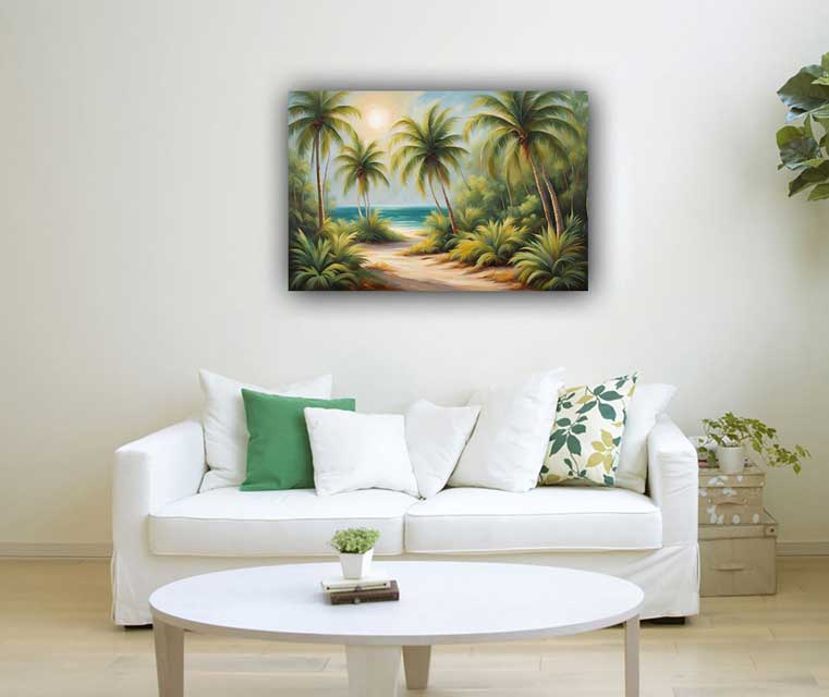 Discover tropical lush green palm tree artwork for the East direction, designed to enhance growth, health, and well-being as per Vastu. Perfect for home or office décor.