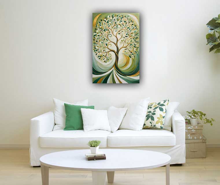 This mesmerizing abstract Tree of Life artwork, featuring swirling shapes and vibrant colors, is designed to enhance the energy of the East direction in your space. Known for promoting health, vitality, and family well-being, the Tree of Life is an ancient symbol of interconnectedness and strength. The fluid swirls in this piece evoke a sense of growth, renewal, and balance, making it perfect for your living room, office, or meditation space. It serves as a stunning reminder of life's ongoing cycle, encouraging harmony and positivity in your environment.