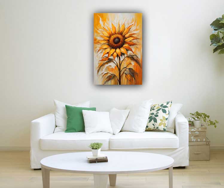 Bring new beginnings into your home or office with this abstract sunflower painting. Designed for the East direction, it promotes health, growth, and positive energy. Perfect for fresh starts and emotional healing, this Vastu-inspired art fills your space with optimism and vitality.