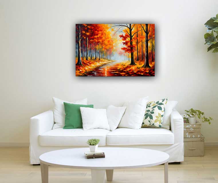 Boost your fame and recognition with this Vibrant Autumn Landscape Painting, perfect for the South direction as per Vastu. The fiery hues enhance success, confidence, and leadership energy.