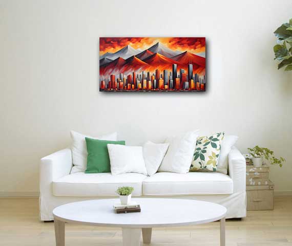 Boost fame and recognition with this cityscape painting featuring majestic skylines and a mountain. Ideal for the South direction as per Vastu, it symbolizes success, ambition, and stability. Perfect for homes and offices.