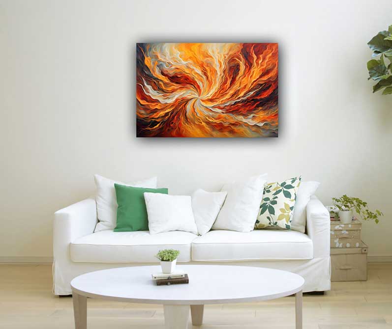 gnite your space with the power of fire! This Abstract Bold Fire Art is a striking masterpiece designed to enhance fame, recognition, and success. With vibrant shades of red, orange, and gold, this artwork radiates passion, energy, and ambition. As per Vastu Shastra, placing this painting in the South direction activates the Fire element, boosting your reputation and career growth. Ideal for homes, offices, and creative spaces, this artwork fuels motivation and inspires bold leadership.