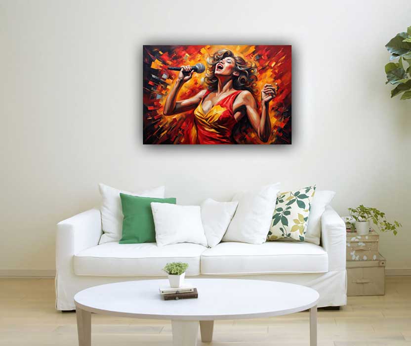 Infuse your space with the energy of passion and enthusiasm with this stunning artwork of a dynamic singer in full expression. Painted in bold shades of red, yellow, and orange, this masterpiece captures the intensity of music and the fire of creativity. Perfect for the South direction as per Vastu Shastra, it enhances recognition, fame, and self-expression. Ideal for artists, performers, and anyone seeking to amplify confidence and charisma in their life.