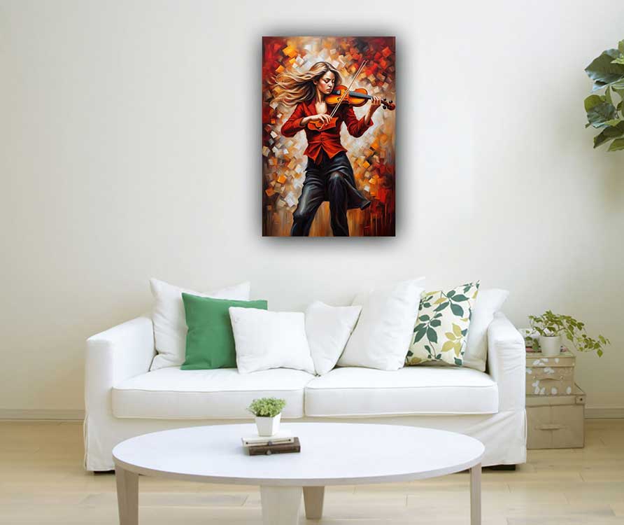 Enhance the South direction of your home with a vibrant oil painting of a passionate violin player. Symbolizing energy, passion, and enthusiasm, this artwork boosts creativity and confidence, making it the perfect addition to your space for motivation and inspiration.