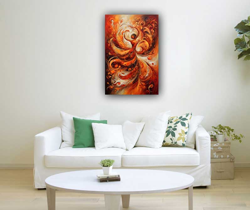 This vibrant abstract painting depicts a dancer in full rhythm, capturing the essence of passion, energy, and enthusiasm. Its dynamic forms and vivid colors, especially in red and yellow hues, represent the fire of creativity and zest for life. Perfect for the South direction as per Vastu Shastra, this artwork enhances energy, vitality, and strength, making it an ideal addition to any home or office seeking to amplify these qualities. Let this captivating piece inspire and elevate your surroundings with its bold expression of movement and spirit.