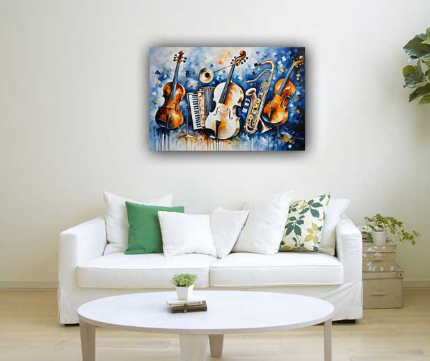 Enhance creativity and innovation with this vibrant music instruments artwork, designed for the West direction of your space. Symbolizing harmony and artistic expression, this painting brings energy and inspiration to your surroundings.