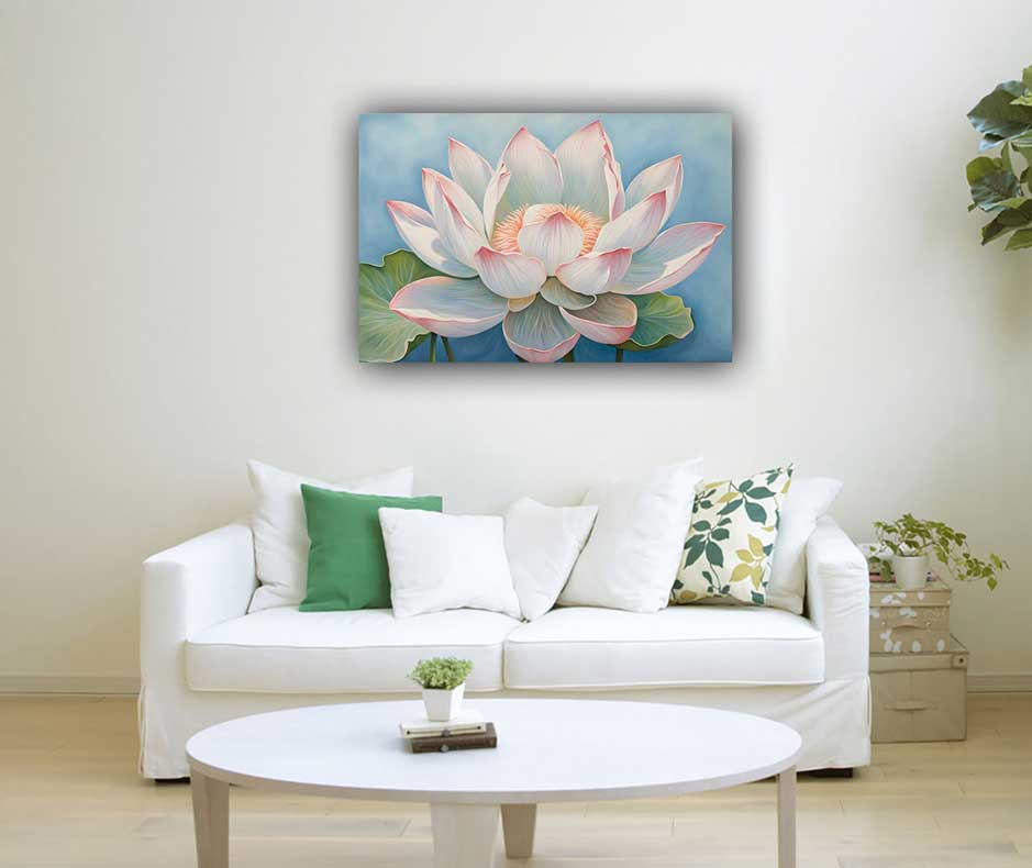 Bring serenity and wisdom into your space with this Delicate Lotus Flower Painting in soft, calming shades. Ideal for the Northeast direction, it enhances spiritual connection and mindfulness as per Vastu and Feng Shui principles. Perfect for meditation and study spaces.