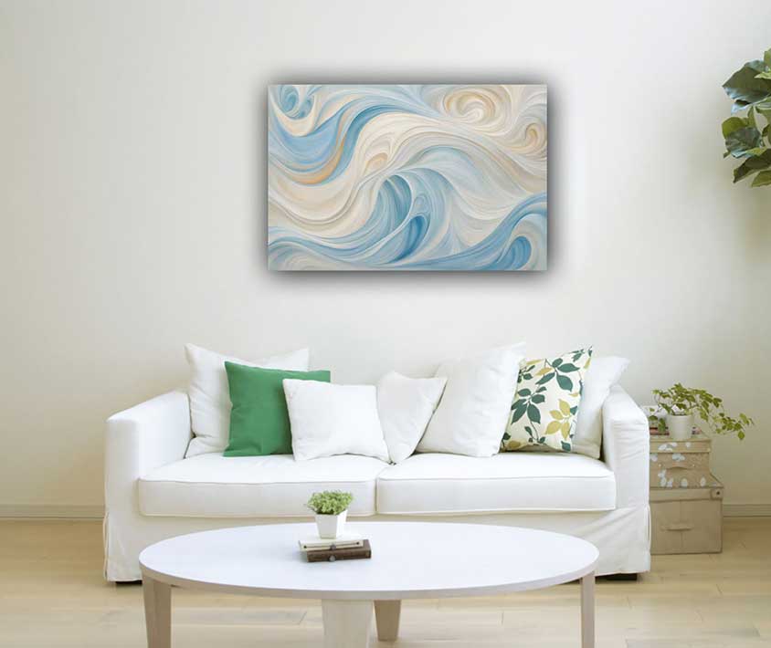 Enhance your spiritual health and well-being with this abstract artwork of gentle waves. Perfect for the Northeast direction, it promotes serenity, mental clarity, and emotional balance. Ideal for cultivating a peaceful and harmonious atmosphere.