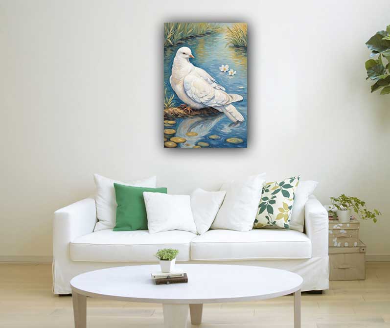 White Dove Over Gentle Stream Art – Vastu Painting for Peace & Harmony