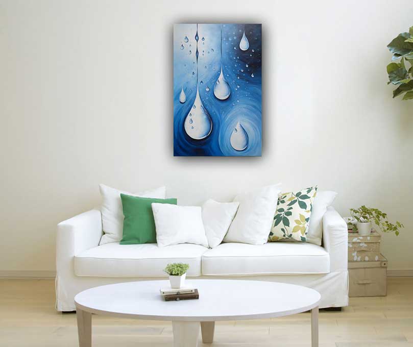 Elevate spiritual health with an abstract water droplet painting, perfect for the northeast direction as per Vastu. Enhance peace, clarity, and divine energy in your space.
