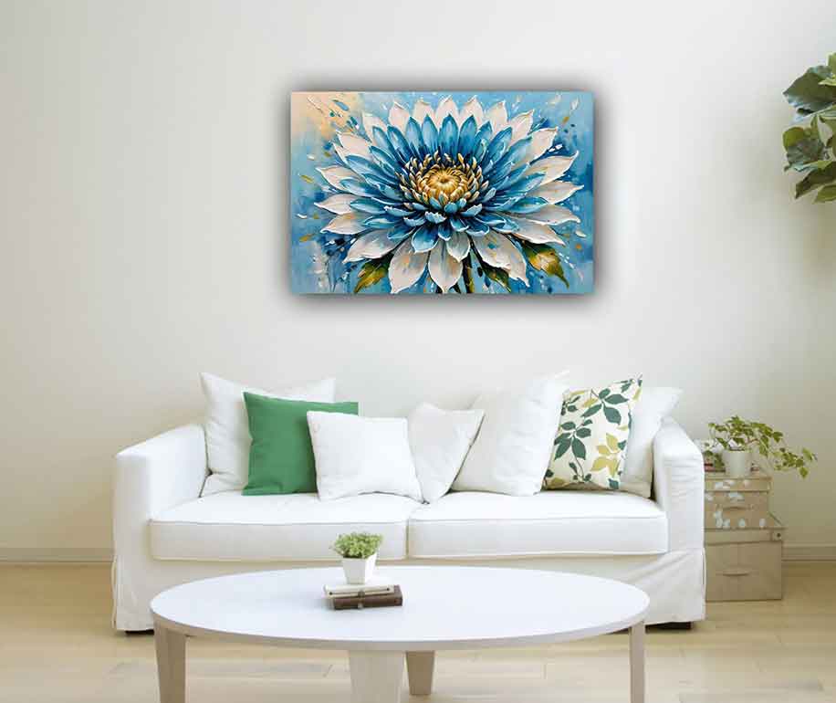 Bring creativity and innovation into your space with this Blue Chrysanthemum Artwork, perfect for the West direction as per Vastu. Ideal for offices and studios, this painting enhances artistic expression and intellectual growth.