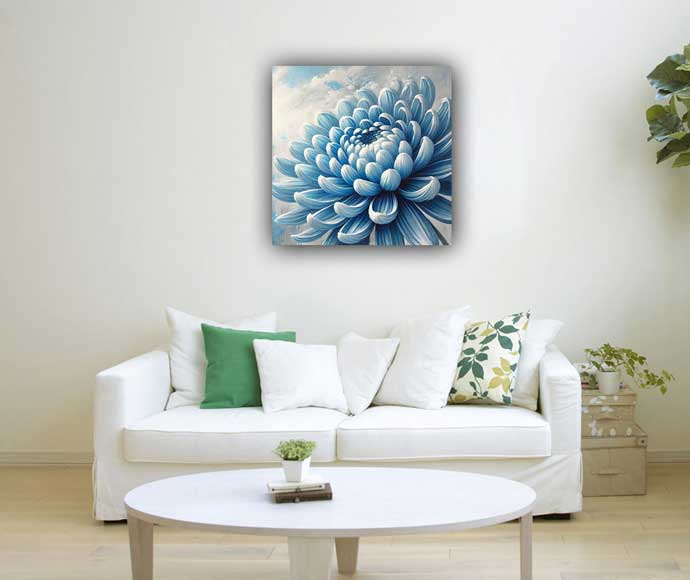Enhance creativity and innovation with Blooming Blue Chrysanthemum Art—a Vastu-inspired painting for the west direction. Perfect for homes, offices, and creative spaces.