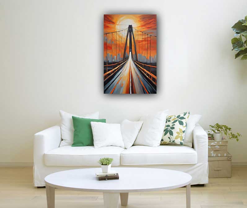 Elevate your space with this stunning Modern High Bridge Artwork, a symbol of fame, recognition, and success as per Vastu Shastra. The towering bridge represents strength, ambition, and the journey to great heights, making it an ideal piece for your South direction to boost career growth and social status. Rendered in a contemporary style with bold, inspiring hues, this artwork adds a touch of modern elegance while activating the fire element of the South. Perfect for professionals, entrepreneurs, and leaders aiming for new milestones.