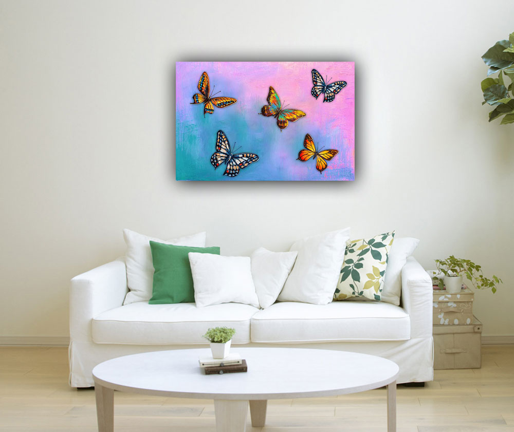 Butterflies are symbolic of change and transformation. They represent joy, happiness and a feeling of fulfillment. They are believed to be powerful representations of life. Hanging butterfly painting can-