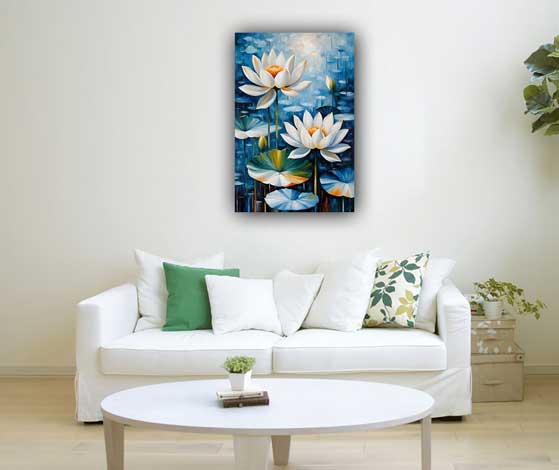 Floral Lotus Artwork for West Canvas Painting for Vastu Balance