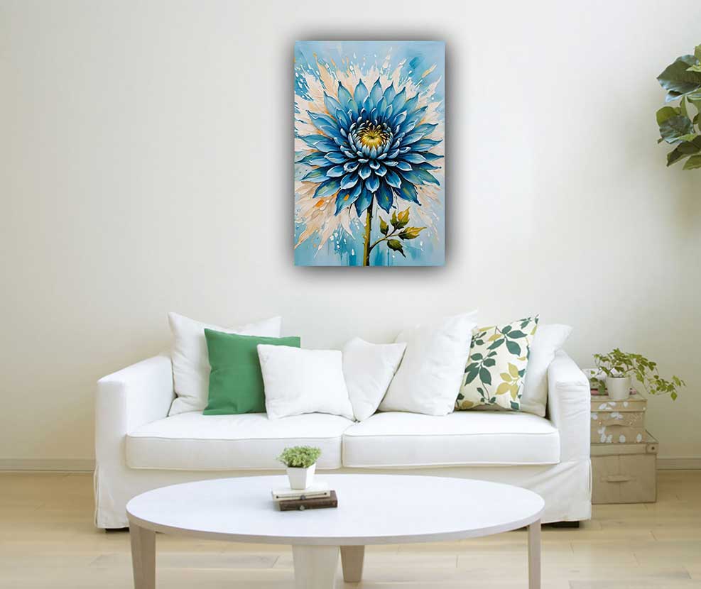 Elevate your space with a Blue Chrysanthemum Painting, symbolizing creativity and innovation. Perfect for the West direction as per Vastu, it enhances originality and fresh ideas. Ideal for home and office décor.