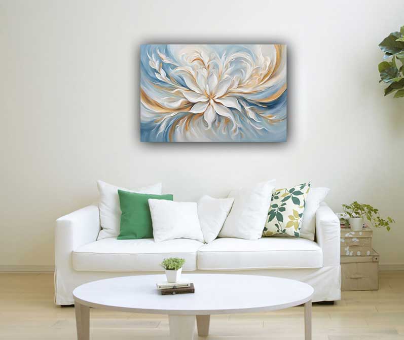 Enhance health and well-being with Jasmine Flower Abstract Art, perfect for the Northeast direction as per Vastu Shastra. This serene floral artwork promotes peace, clarity, and healing in your space.
