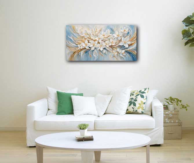 Enhance the energy of your space with this stunning Jasmine Flower Abstract Art, designed as per Vastu Shastra for the Northeast direction. Symbolizing purity, serenity, and healing, jasmine flowers are known to promote mental clarity, peace, and well-being. The soft, flowing abstract strokes in this artwork radiate positive vibrations, making it ideal for meditation spaces, study rooms, or any area where you seek calmness and rejuvenation. Bring home this Vastu-approved masterpiece and invite health, harmony, and tranquility into your life.