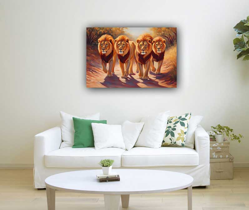 Enhance power, leadership, and confidence with a lion pack painting for the South direction. Designed as per Vastu, this artwork symbolizes strength, success, and recognition. Perfect for home and office.