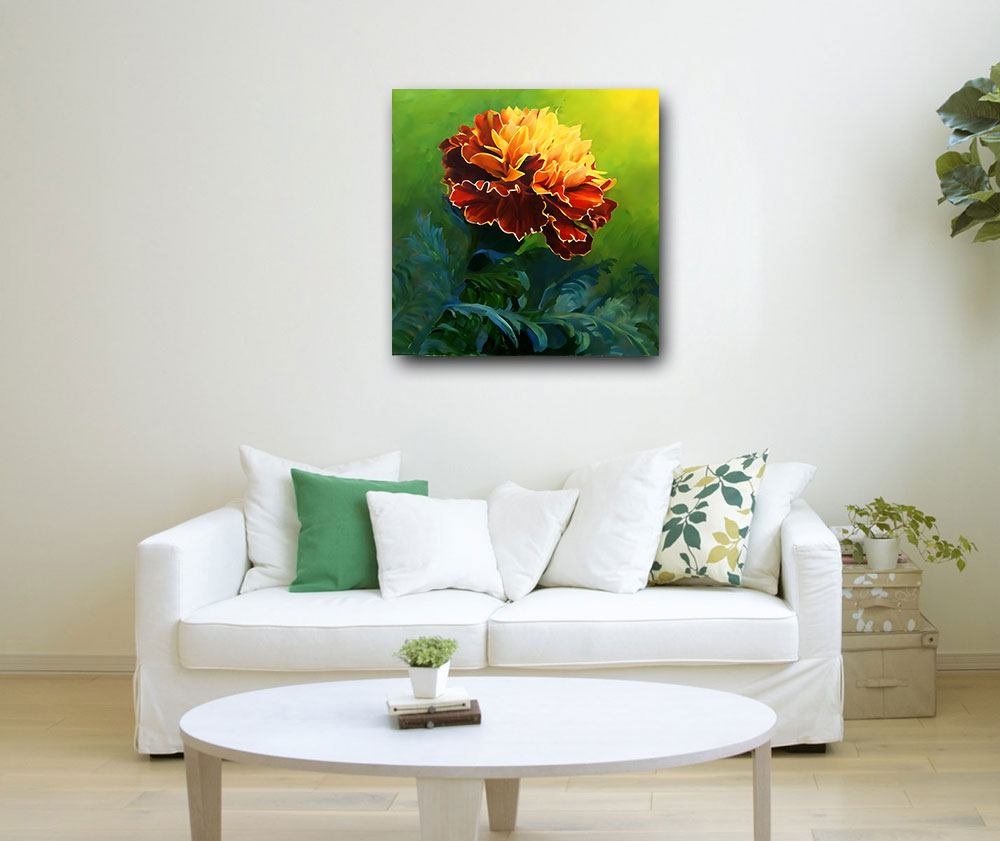 Adds Beauty and Aesthetics: A painting of marigold flowers can add beauty and aesthetics to the living space. It can be a focal point of the room and can create a soothing and calming effect on the occupants.
