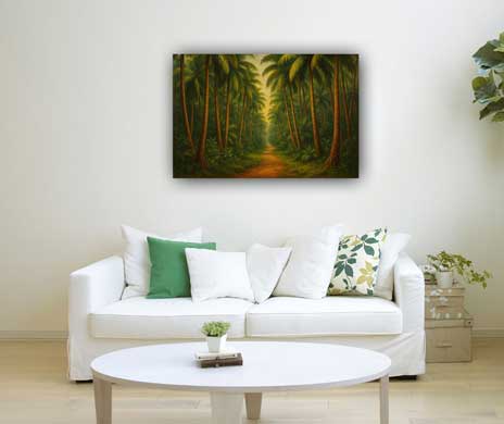 A Forest Painting symbolizes growth, peace, and natural energy. In Vastu, it represents the Earth element and brings stability and emotional balance. Placing it in the East enhances health and vitality, while in the North-East, it supports clarity, calmness, and spiritual growth. Choose bright, green forest scenes with soft sunlight for positive and refreshing energy.