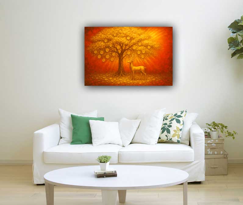 Money Tree canvas painting for Southeast direction—designed to bring wealth, prosperity, and financial abundance in alignment with Vastu Shastra.For more options of this painting,visit:https://www.artfactory.in/category/Vastu-Feng-Shui/Abundance-Symbol