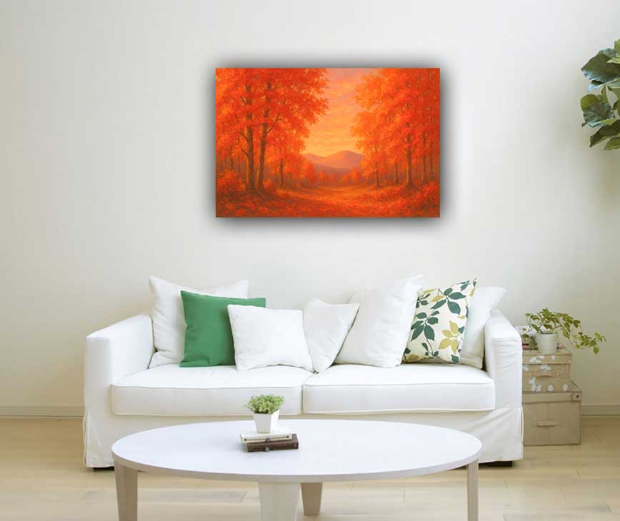 Add fiery energy and inspiration to your South-facing spaces with this Autumn Landscape canvas painting designed for passion and enthusiasm.