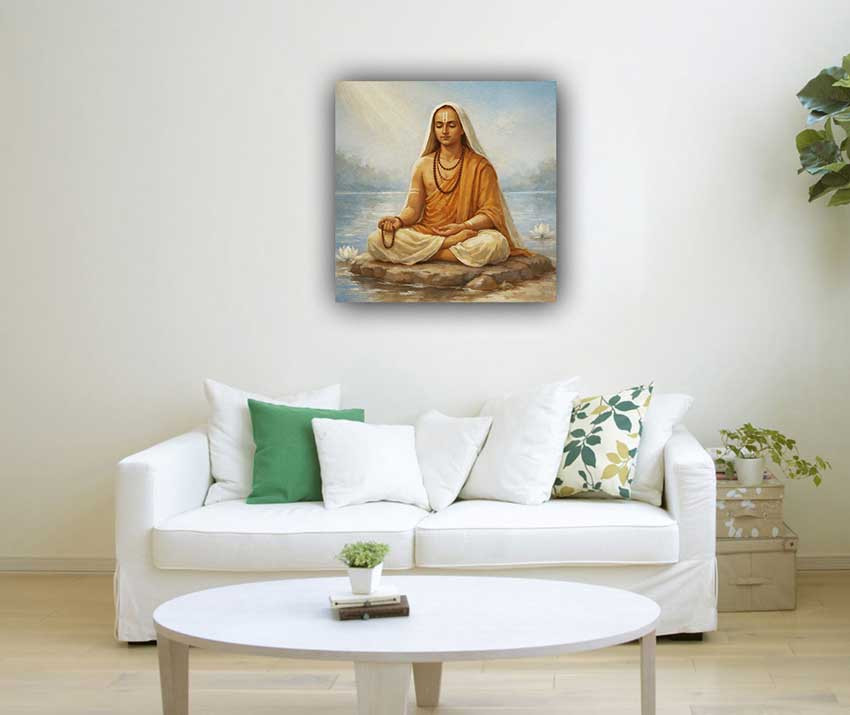 Adi Shankaracharya wall art represents Advaita philosophy, spiritual discipline, and divine knowledge. Designed as premium canvas wall art, this artwork on canvas radiates calm intellectual energy that strengthens focus and deeper contemplation.