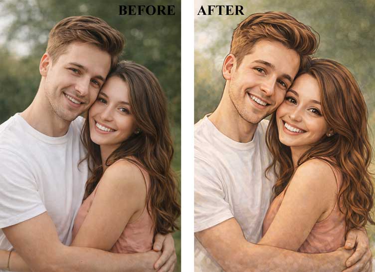 About Custom Portrait Paintings Custom portrait paintings transform your cherished photographs into meaningful works of art. They capture special memories, emotions, and moments, making them a timeless keepsake for you and your loved ones. Personalized portraits are a unique and thoughtful gift for many occasions such as birthdays, weddings, anniversaries, housewarmings, and celebrations. They are also ideal for corporate gifting, allowing companies to present memorable and customized artwork to employees, clients, and business partners. You can choose from 9 unique portrait styles, including: • Oil Painting Portrait • Watercolor Portrait • Sketch Portrait • Sketch Portrait • Faceless Portrait • Royal Portrait • Cartoon Portrait • Pop Art Portrait • Caricature Portrait The images shown on this page are reference samples of different portrait styles. Our artists will create your portrait based on the photo you provide and may make adjustments to ensure the best possible artistic result. The orientation of the final portrait (landscape or vertical) will depend on the composition of the photo you submit and the artist’s judgment for the best visual appeal. Please note that the final artwork may vary depending on the quality, pose, lighting, and details of the submitted photograph. There may also be minor size variations depending on the composition of the photo provided. The final dimensions of the portrait will therefore be approximate and adjusted by the artist to achieve the best visual balance. For the best results, please send a clear, high-resolution close-up photo.