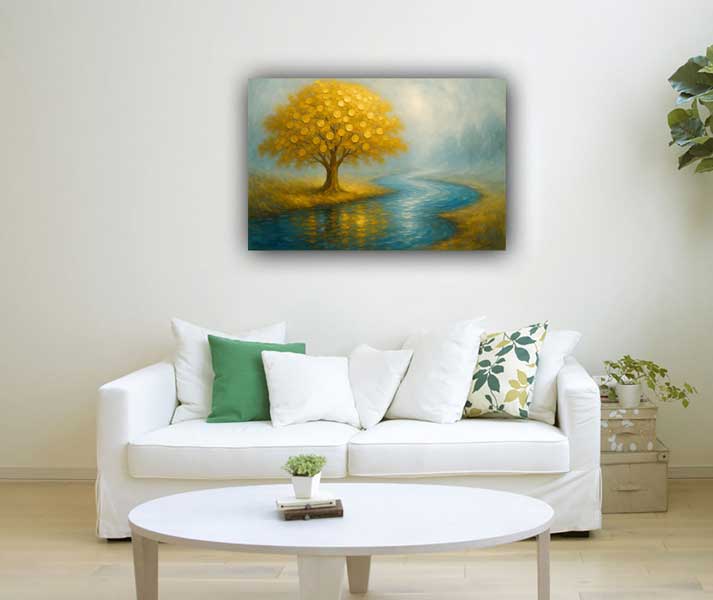 Gold Tree Wall Art for Prosperity & Wealth is a thoughtfully designed vastu painting that symbolizes continuous income, stability, and financial expansion. According to vastu principles, the North direction is governed by wealth energy, and placing a Gold Tree artwork here helps strengthen cash flow and professional opportunities.This artwork is created as premium canvas wall art, using high-quality printing and rich detailing that makes it suitable for modern homes, offices, corporate cabins, and workspaces. The balanced composition and soothing tones make it not just a vastu painting, but also an elegant piece of modern canvas prints that elevate interior décor.