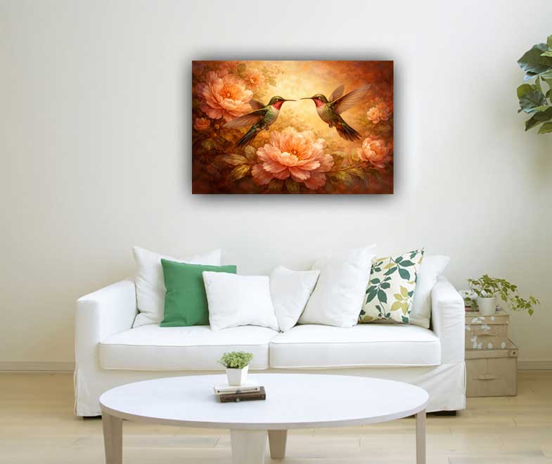 A lively hummingbirds painting symbolizing joyful connection, affection, and positive energy.For more options,visit : https://www.artfactory.in/category/Vastu-Feng-Shui/Landscape