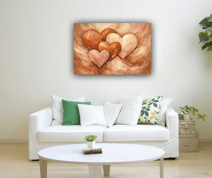 This beautifully crafted intertwined hearts painting symbolizes deep emotional connection, unity, and lasting love. The overlapping hearts represent togetherness, mutual understanding, and the blending of energies in a harmonious relationship. The warm earthy tones enhance feelings of comfort, affection, and emotional balance, making it ideal for bedrooms or shared living spaces. As a vastu-inspired artwork, it attracts loving energy, strengthens relationships, and creates a peaceful, harmonious atmosphere filled with warmth and connection.