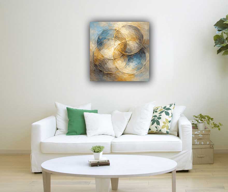 This abstract circles painting features smooth radial motion and soft blended tones that encourage intuitive thinking and creative exploration. The flowing circular composition represents continuous ideas and mental expansion, making it ideal for creative spaces, offices, or study areas. Its calming yet dynamic presence supports innovation and clarity. As a vastu painting, it enhances positive energy, promotes imagination, and supports inventive thinking. Perfect as wall art, canvas wall art, or modern canvas prints, it adds depth and meaning to your décor.