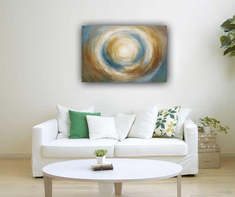 This abstract circles painting uses soft gradients and layered textures to represent clarity of thought and innovative thinking. The circular motion draws focus inward, encouraging deep reflection and idea generation. Ideal for offices, study rooms, or brainstorming spaces, it enhances concentration and creativity. As a vastu painting, it supports mental balance, clarity, and positive energy flow. Perfect as wall art, canvas wall art, or modern canvas prints, it elevates both style and purpose.
