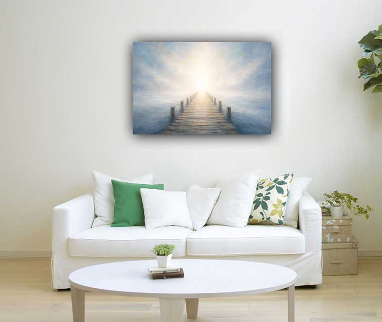 This serene canvas painting of a wooden pier extending into calm waters symbolizes clarity, direction, and personal evolution. Designed as vastu paintings for the North-West, it supports emotional balance and steady progress while adding peaceful elegance to your wall art collection.