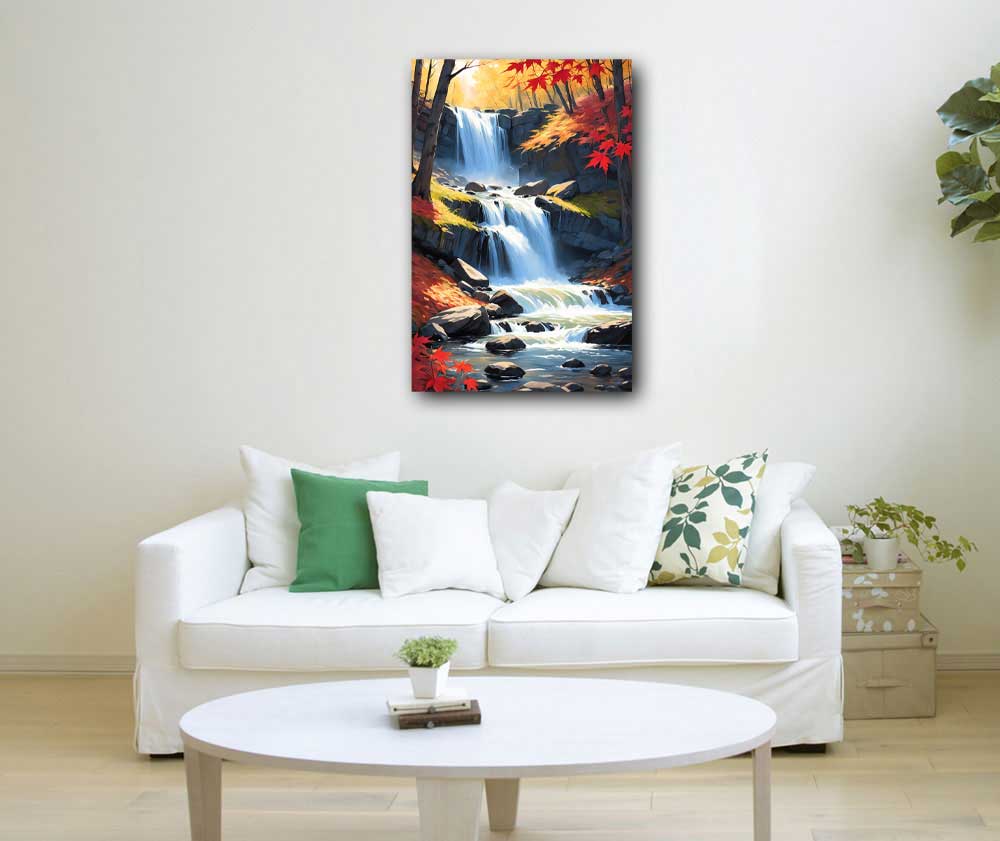 Embrace the harmonious flow of nature with a waterfall painting, a symbol of tranquility and abundance in both Vastu and Feng Shui practices. According to Vastu principles, placing a waterfall painting in the north or northeast direction of your home or office can enhance wealth and prosperity, as these directions are associated with abundance and positive energy flow. In Feng Shui, a waterfall painting represents the flow of Chi, bringing vitality and prosperity into your space. Whether you're seeking to balance energies, invite prosperity, or simply create a sense of calm, a waterfall painting is a timeless addition to any environment. Explore our collection and invite the soothing essence of cascading water into your life today.