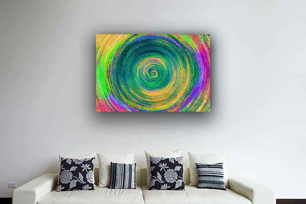 Abstract Paintings in East for Health, Well-being and New Beginning. Uplifting Spirals or Swirls in Green and Light Blue (Vastu): Spirals are often associated with growth, expansion, and continuous evolution. In the context of the East direction, they may symbolize the rising sun, new beginnings, and positive energy.