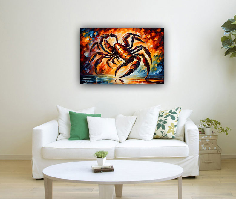 Discover the allure of our Symbolic Scorpion Painting tailored for Scorpio Zodiac. Dive into the depths of Scorpio's intensity with this captivating artwork, reflecting the passionate and mysterious essence of the Scorpio sign. Explore the emotional depth and symbolism depicted in this unique piece, perfect for any Scorpio enthusiast or astrology aficionado.
