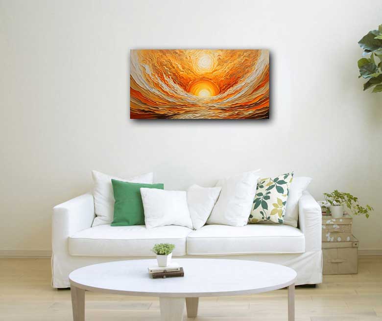 This vibrant abstract painting of the Sun is designed to bring prosperity and wealth into your life. Placed in the Southeast direction, the Sun symbolizes energy, vitality, and financial growth as per Vastu Shastra. Its dynamic design, with bold and radiant strokes of gold, orange, and red, represents the endless flow of abundance and opportunities. Perfect for enhancing your financial prosperity, this piece serves as a powerful reminder of the energy required to fuel your success. Ideal for your home or office, it aligns with the Vastu principles for financial well-being.