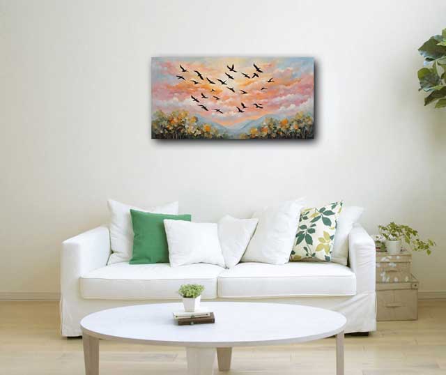 This Painting of Flying Birds reflects lightness, support, and movement – qualities governed by the Northwest zone in Vastu.